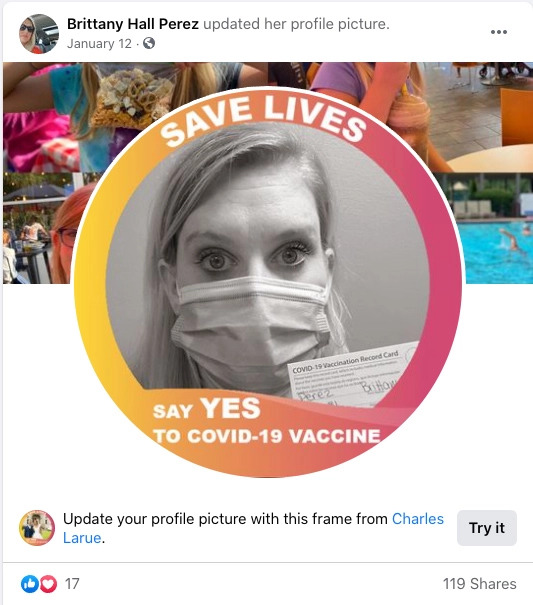 According to Perez’s Facebook page, she last updated her status one day prior on January 12, swapping her profile pic for one of her wearing a mask while displaying a “Covid-19 Vaccination Record Card.”